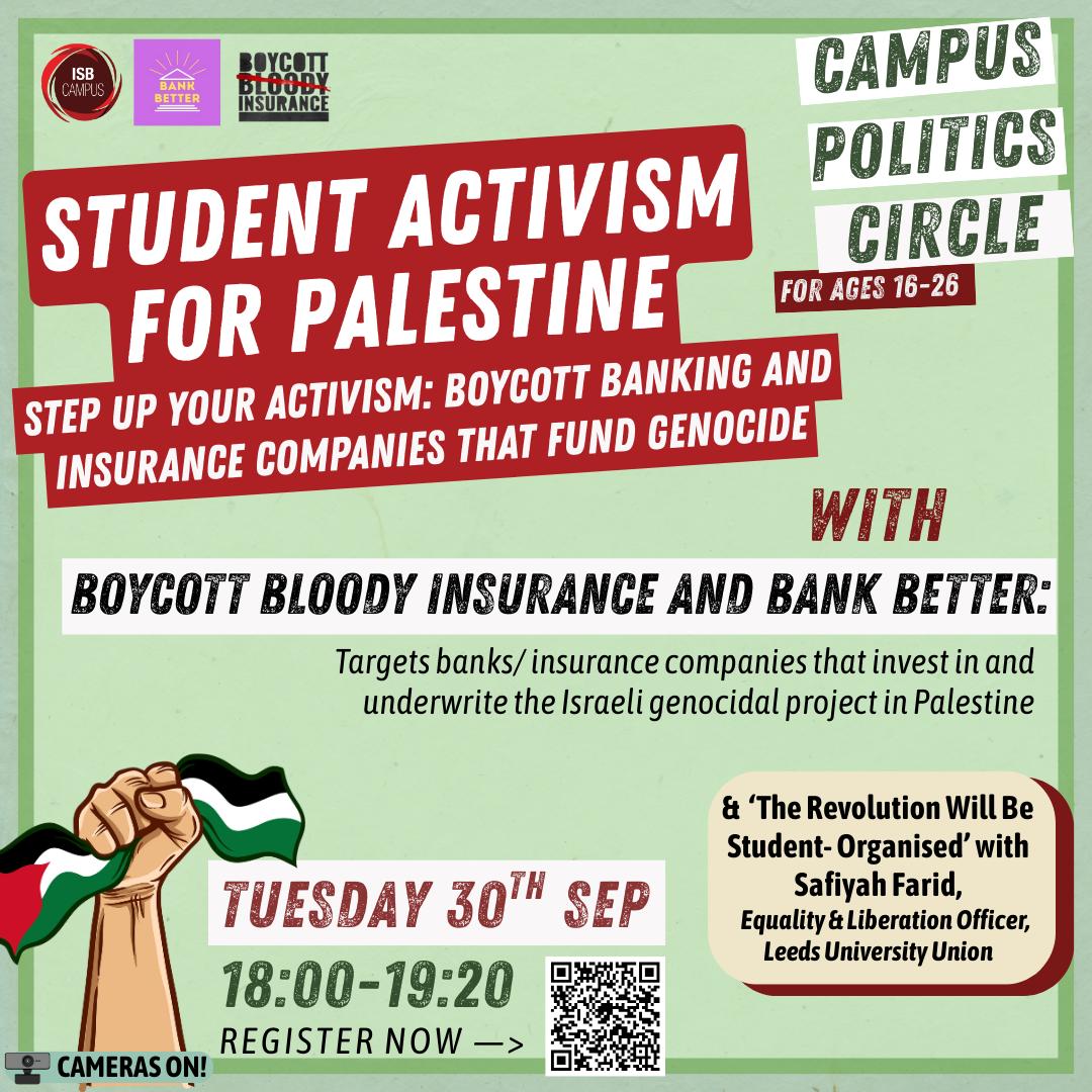 Step up your activism: Boycott banking and insurance companies that fund genocide!