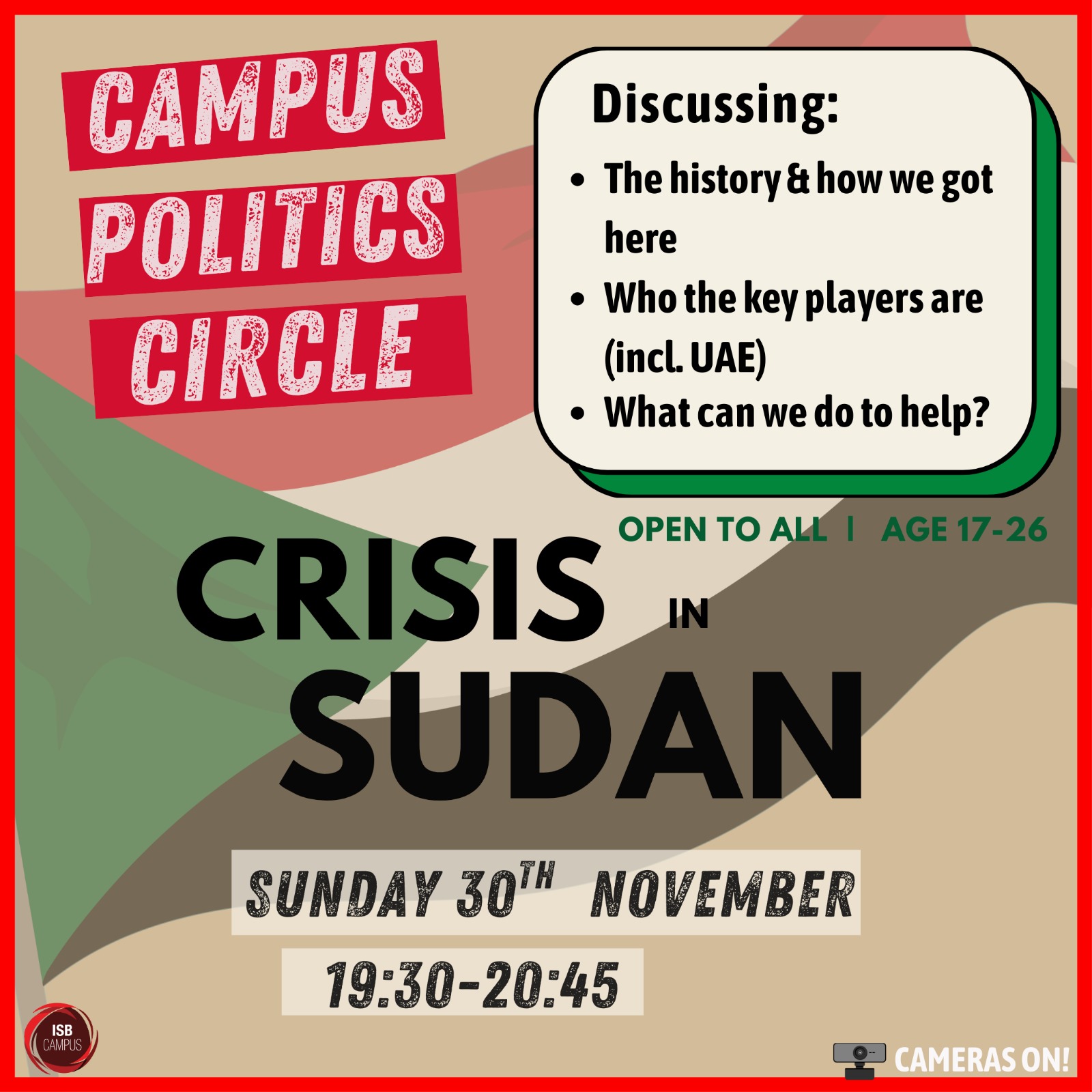 Sudan is currently the biggest humanitarian crisis in the world, yet one of the least covered. It’s also entirely man-made. In this circle, delivered by a member of the University of Manchester Sudanese Society, we will explore: