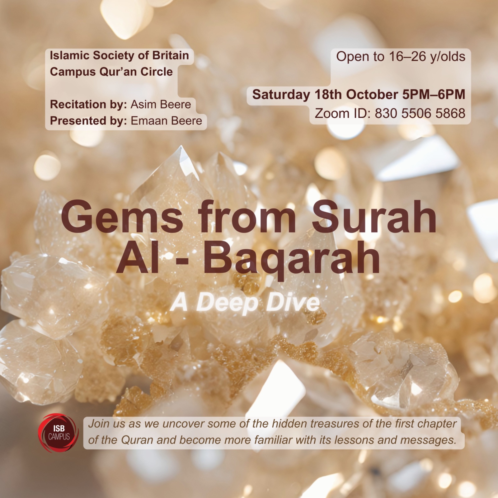 These are beautiful online circles run entirely by Campus. A reciter will recite set verses for all to enjoy. We then segregate by gender into breakout rooms to recite a verse each, should we wish (there is no pressure to recite!). Together, we gather again to discuss how the verses impact our hearts and lives!