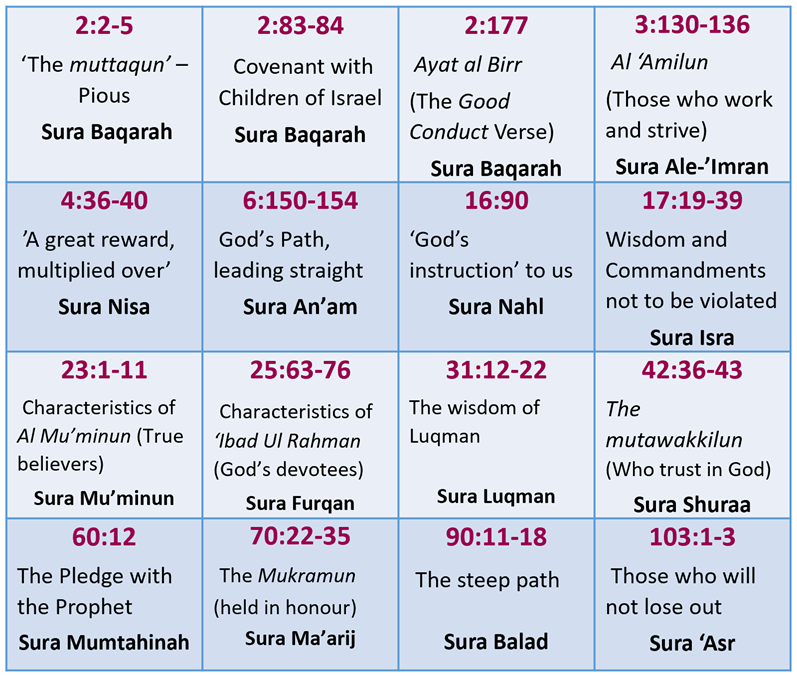 These special sections of the Qur’an are in fact well known to us, and are often chosen for lectures on Qur’anic exegesis (tafsir). Here is a selection of such verses: