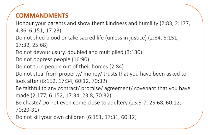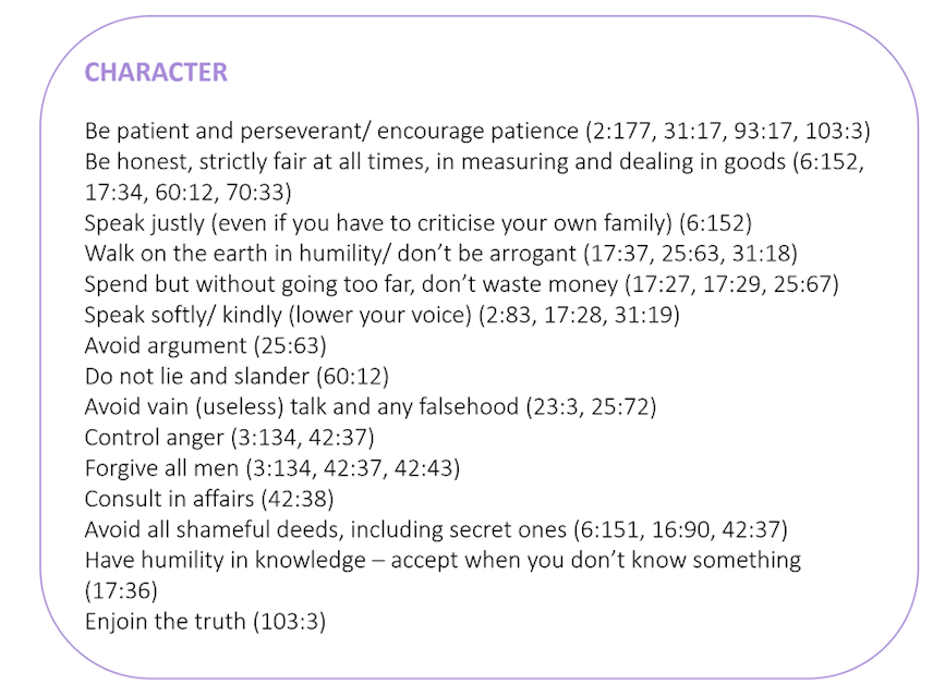 These teachings also encompass rules which are instinctive and inherent in all faiths and communities, e.g. around the prohibition of murder, theft, adultery, deceit and exploitation. As well as ‘don’t’ rules, there are exhortations to have soft hearts, gushing with empathy and compassion – that drive us to be charitable, stand up for the weak and exploited and to strive to eliminate harms in society. Adherents of Islam’s Spiritual Code will be a blessing to society, solving its problems, working for the common good – not a despised nuisance! Then there are teachings around taking a spiritual path and good character – being kind, controlling the tongue, being patient and controlling anger.