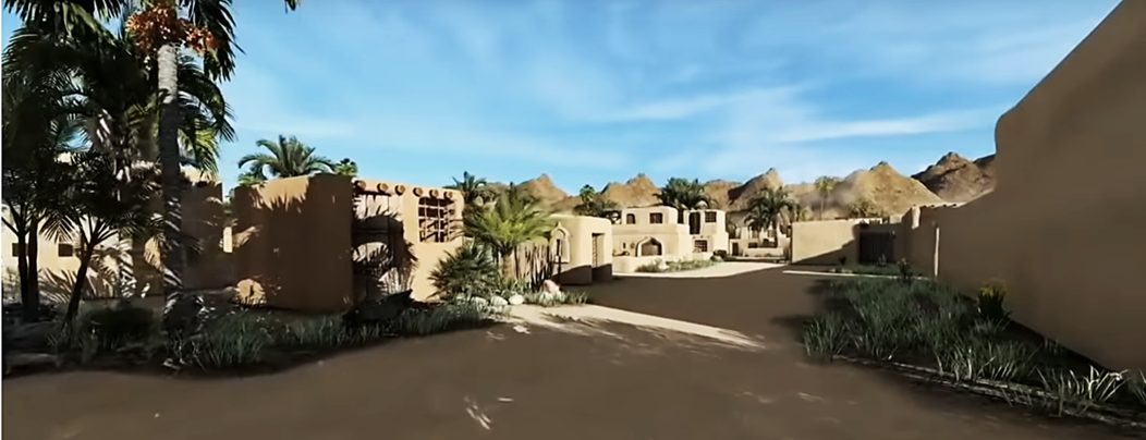 Frame from 3D animated walk-through of Medina at the time of the Prophet (with outer wall of the Prophet’s mosque to the right)
